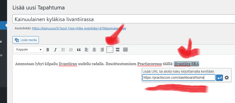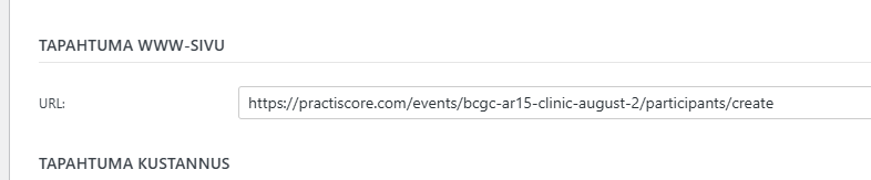 Tapahtuman www-sivuun voit syöttää Practiscore/SSI:n linkin tapahtumaan: