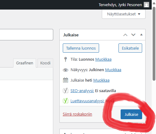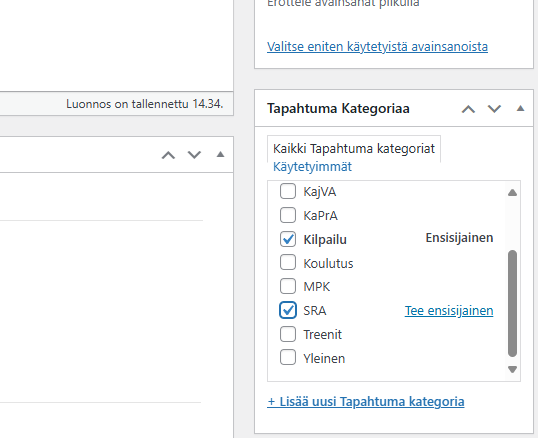 Sitten oikealta valitse kategoriat mihin liittyy: